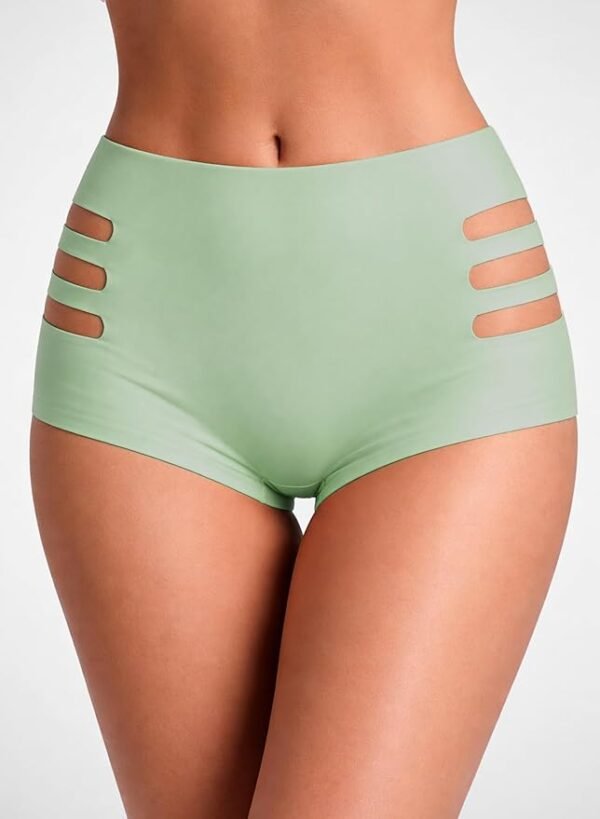 These ELEG & STILANCE women’s high waist seamless hipster panties combine style and comfort with their distinctive side cut design. The high waist construction provides excellent tummy control and full coverage, making these panties perfect for everyday wear. Crafted from stretchable fabric, these seamless hipster panties move with your body whilst maintaining their shape throughout the day. The innovative side cut-out detailing adds a modern, fashionable touch to classic underwear design. Available in beautiful pastel colours including mint, pink, and peach, these mid-thigh innerwear pieces offer versatility to match any outfit. The seamless construction ensures no visible panty lines under clothing, giving you a smooth silhouette. The stretchable material provides a comfortable, secure fit that stays in place without digging in or rolling down. Whether you’re heading to work, the gym, or a special occasion, these full coverage panties deliver the perfect blend of functionality and fashion. The hipster style sits comfortably on the hips whilst the high waist design offers additional support and coverage where you need it most.
