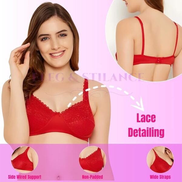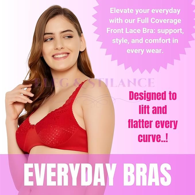 HomeShapewearPantyLingerieBrasEveryday BrasELEG & STILANCE Women’s Full Coverage Non-Padded Lace Bra | Side Wired Support | Plus Size Minimizer | Soft, Comfortable | Stylish Designer Everyday Bra