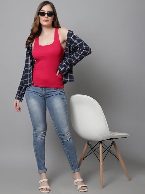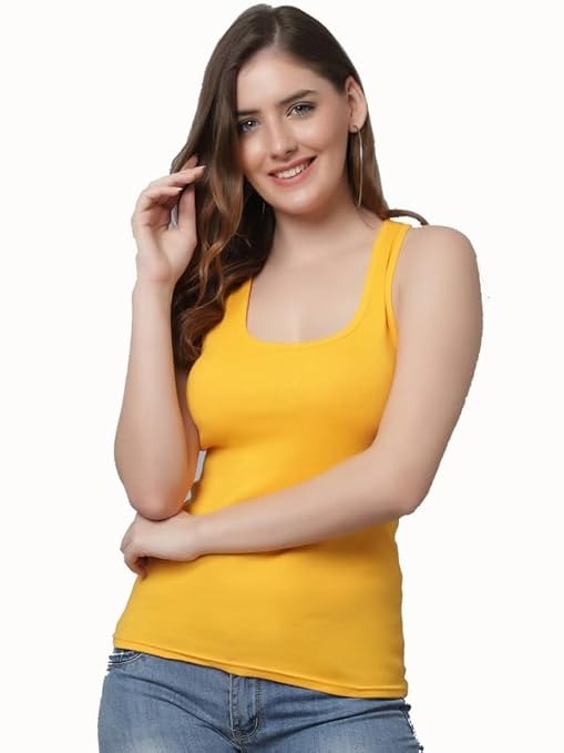Fashiol Cotton Plain Spaghetti Tank Top Vest Camisole Sando for Women (Fit 32 to 36) Multicolor