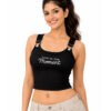 The stylish buckle strap detailing adds a unique, edgy touch to your outfit while ensuring a secure and adjustable fit. The sleeveless cropped silhouette highlights your waistline, and the “Live in the Moment” printed design brings a trendy, youthful appeal.