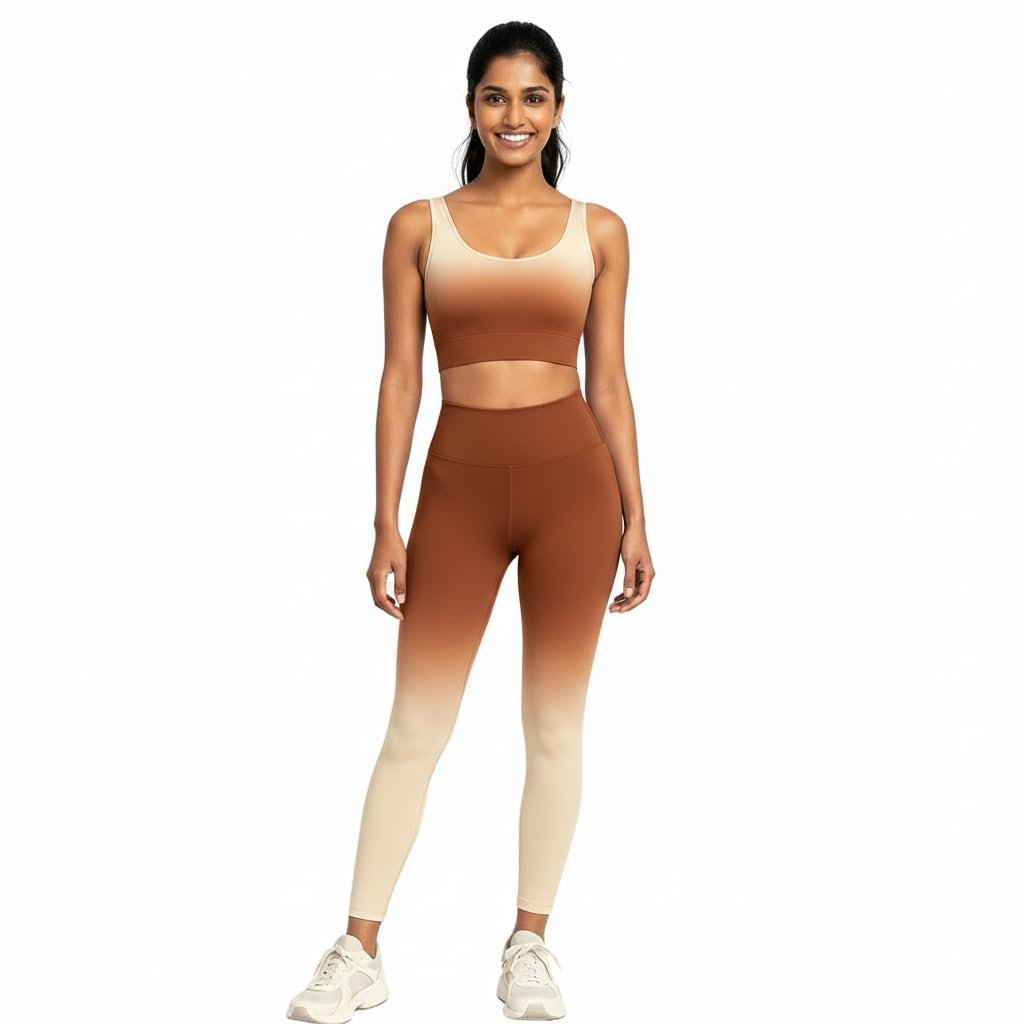 Fashiol Women’s 2-Piece Ombre Gym Set | Seamless Sports Bra & High-Waist Leggings | Stretchy Workout Yoga Activewear for Fitness & Training
