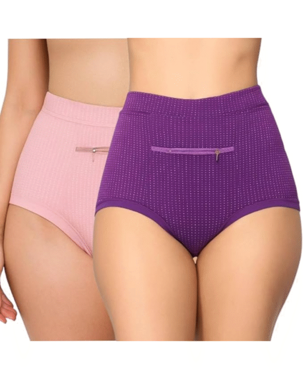 Be the first to review “Fashiol Women’s High Cut Panties | Solid Color Tummy Control Briefs | Cotton Underpants with Travel Zipper Pocket | Multicolor- Pack of 2”