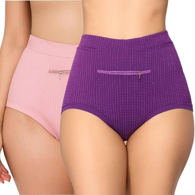 Fashiol Present Zipper Featured Unique Design Panty for Womens/Girls Pack of 2 Assorted Colours KEEP VALUABLES SAFE : Perfect for traveling or workout to keep money or small valuable safe and secured. The Pocket is approximately 6×6 inches (Varies by size)- fit emergency cash, credit card, ID/Passport, and other valuables. TUMMY CONTROL: Flatten your tummy with this high waist panty. Shapes and smoothes torso, waist and hips. HIGH QUALITY: Comfortable fit with elastic material with front deep pocket with zipper for money holder. SLIMMER LOOK: Triangle stitches makes slimmer look. HIGH QUALITY: Comfortable fit with elastic material with front deep pocket with zipper for money holder.