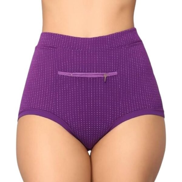 HomeShapewearPantyLingeriePantiesHipstersFashiol Women’s High Cut Solid Color Tummy Control and Travel Zipper Pocket Panties Cotton Underpants Briefs | Multicolor – Pack of 2