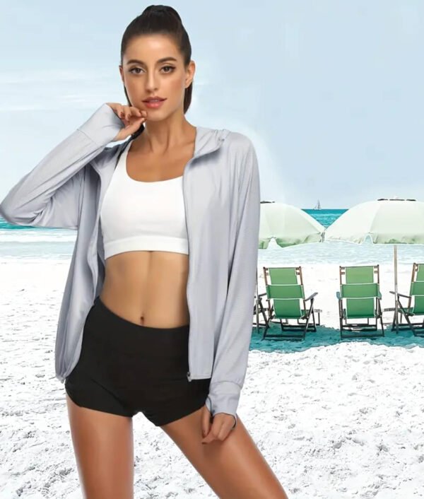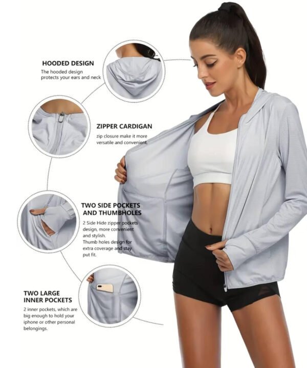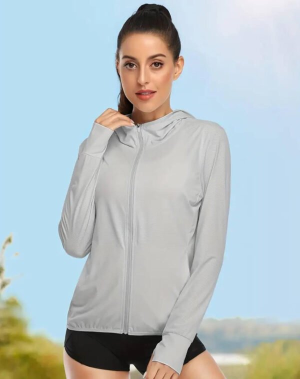 HomeClothing & AccessoriesSport Specific ClothingRunningWomen Summer UPF 50+ Sun Protection Soft Breathable Long Sleeve Thumb Hole UV Jacket Hoodie Full Zip Cooling Shirt With 2 Side Pocket